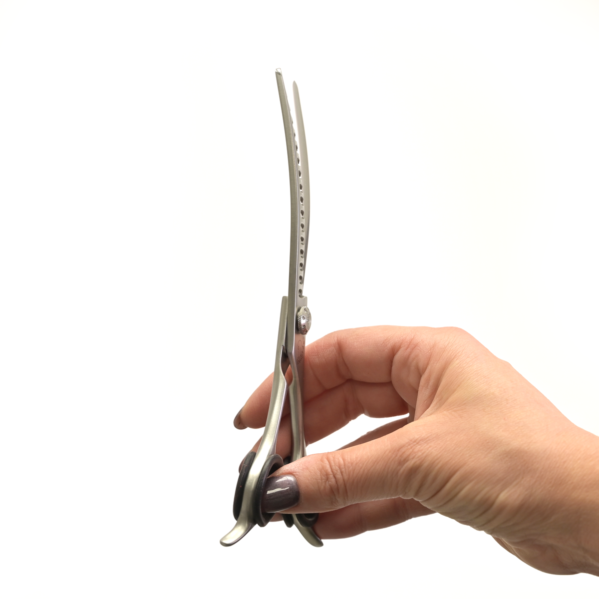 Till skillnad från traditionella frisörsaxar är dessa skapade med en speciell vinkel som förhindrar det vanliga problemet att saxbladet trycker in i fingrarna, vilket undviker bildandet av förhårdnader och blåsor. -