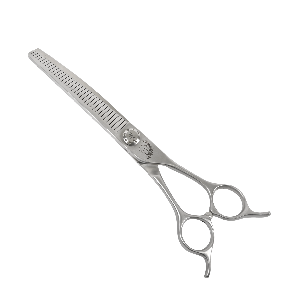 Effileringssaxen används för att tunna ur din hunds päls, för att skapa en fin finish och för att jämna till ojämnheter eller övergångar. Den böjda passar utmärkt till att skapa mjuka, rundade former.